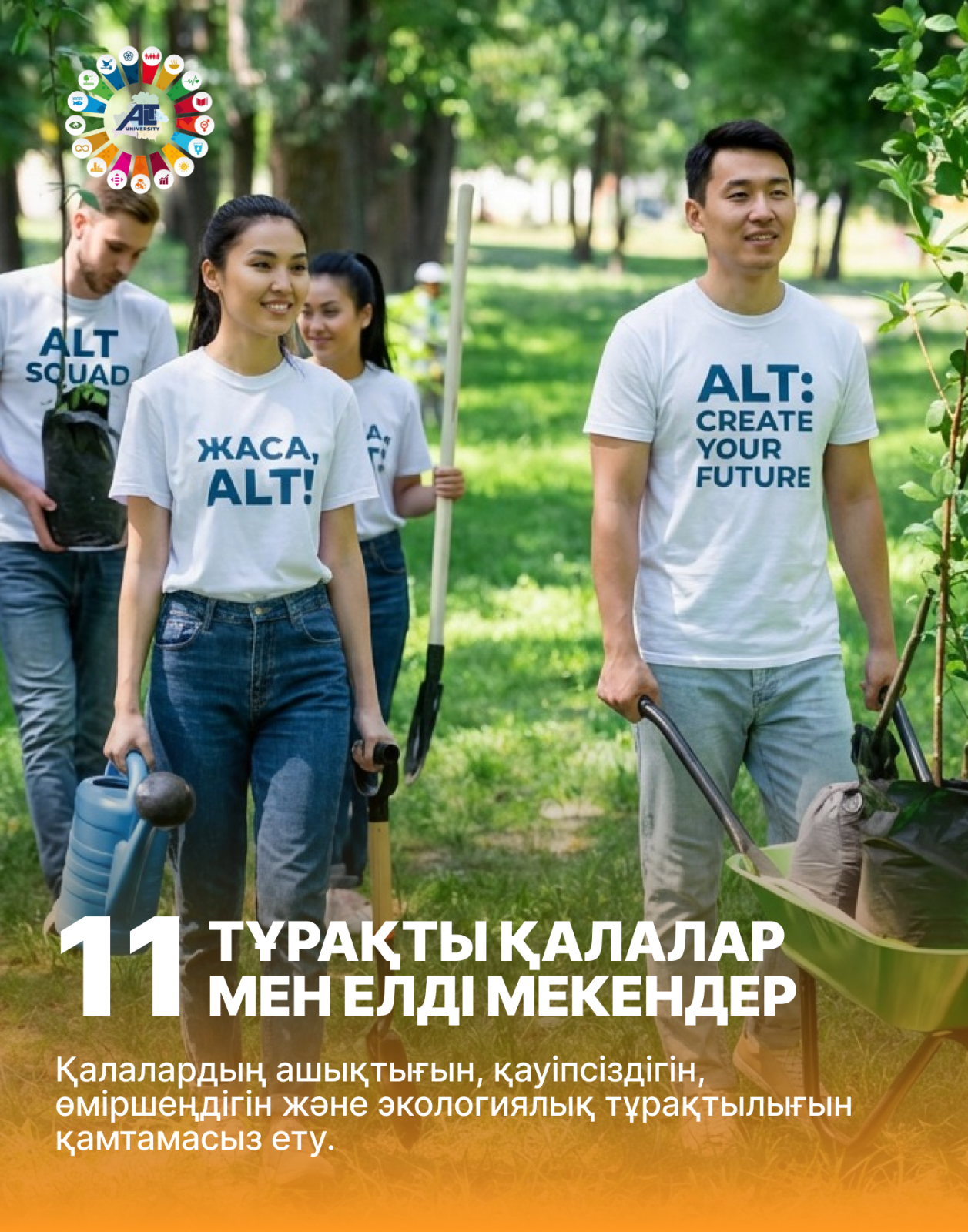 ALT Университеті — «жасыл» болашаққа арналған идеялар туындайтын орын. Біз студенттер, оқытушылар, қызметкерлер мен серіктестер ортақ мақсаттар үшін: көміртек ізін азайту, ресурстарға ұқыпты қарау және еліміз бен өңіріміздің тұрақты дамуын қамтамасыз ету үшін бірігетін экожүйе құрып жатырмыз.