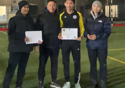 A football competition among first-year students was held at the «M. Tynyshpayev ALT University». The competition was dedicated to the 180th anniversary of Abay Kunanbayev and was themed “A Healthy Lifestyle – the Key to Developing a Full-Fledged Personality.”