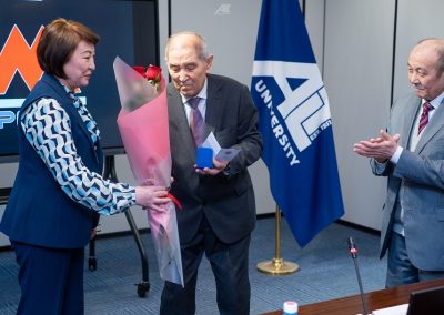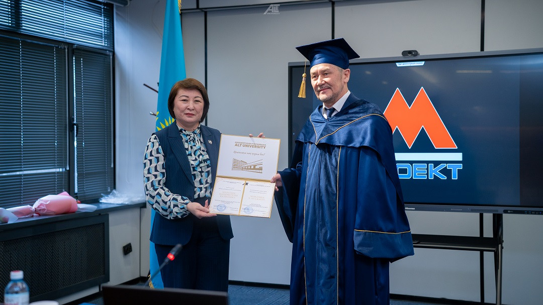 The veteran of ALT University, Doctor of Technical Sciences, Professor Erkin Abdurashidovich Isakhanov, was honored with a high award for his long-standing, fruitful work in educating the youth and training highly qualified specialists for the construction industry of Kazakhstan. He was presented with the honorary badge and diploma of «Dankty Kurulysshy» (Distinguished Builder). This award is timed to coincide with the professor’s outstanding achievements in strengthening the construction sector of independent Kazakhstan.
