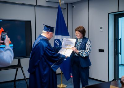 The award ceremony was presided over by the Chairwoman of the Board-Rector, Doctor of Economic Sciences, Meruert Sovetovna Zharmagambetova.