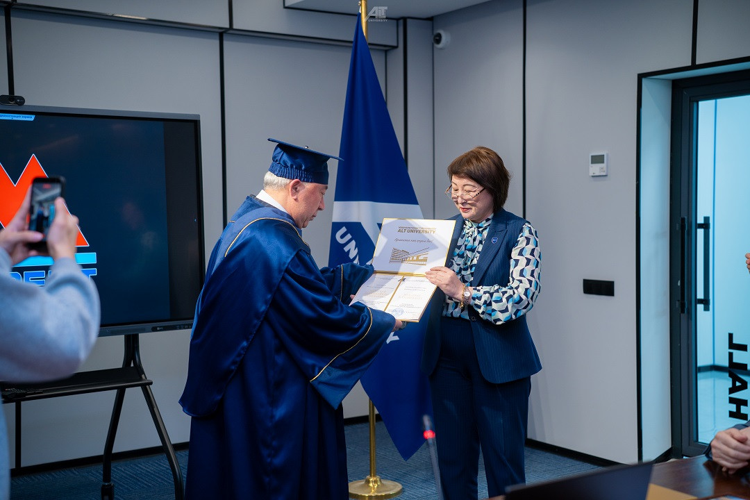On February 26, 2026, ALT University named after Mukhamedzhan Tynyshpayev held a regular meeting of the Academic Council. The event was marked by a solemn ceremony honoring professionals who have made an invaluable contribution to the development of the transport and communications complex and the educational system of the Republic of Kazakhstan.