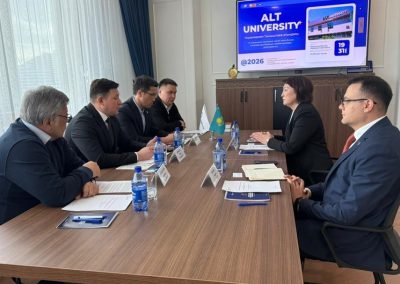 On April 16, 2026, representatives of ALT University — Chair of the Board – Rector Meruert Zharmagambetova and Vice-Rector for Corporate and Social Development Andrey Ivanov — held a meeting with the leadership of the Otandastar Foundation. During the meeting, the Foundation expressed special gratitude to the staff of ALT University for their active participation in the “Education Days of Kazakhstan” exhibition, which took place on March 25–26, 2026, in the Bayan-Ölgii region of Mongolia.