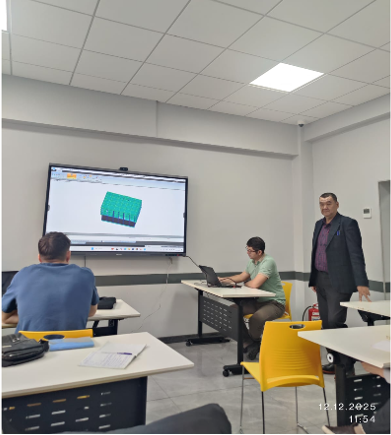 On December 12, 2025, the Department of Architectural and Civil Engineering hosted a guest lecture by Ulan Sabitovich Kuralov, Head of the Monolithic Concrete Division of Kazakh Research Institute of Construction and Architecture (KazNIISA) LLP. The lecture was delivered to students enrolled in the educational program “Construction of Industrial and Civil Buildings and Structures” and was titled “Analytical and Computational Methods in Modern Construction Design.”