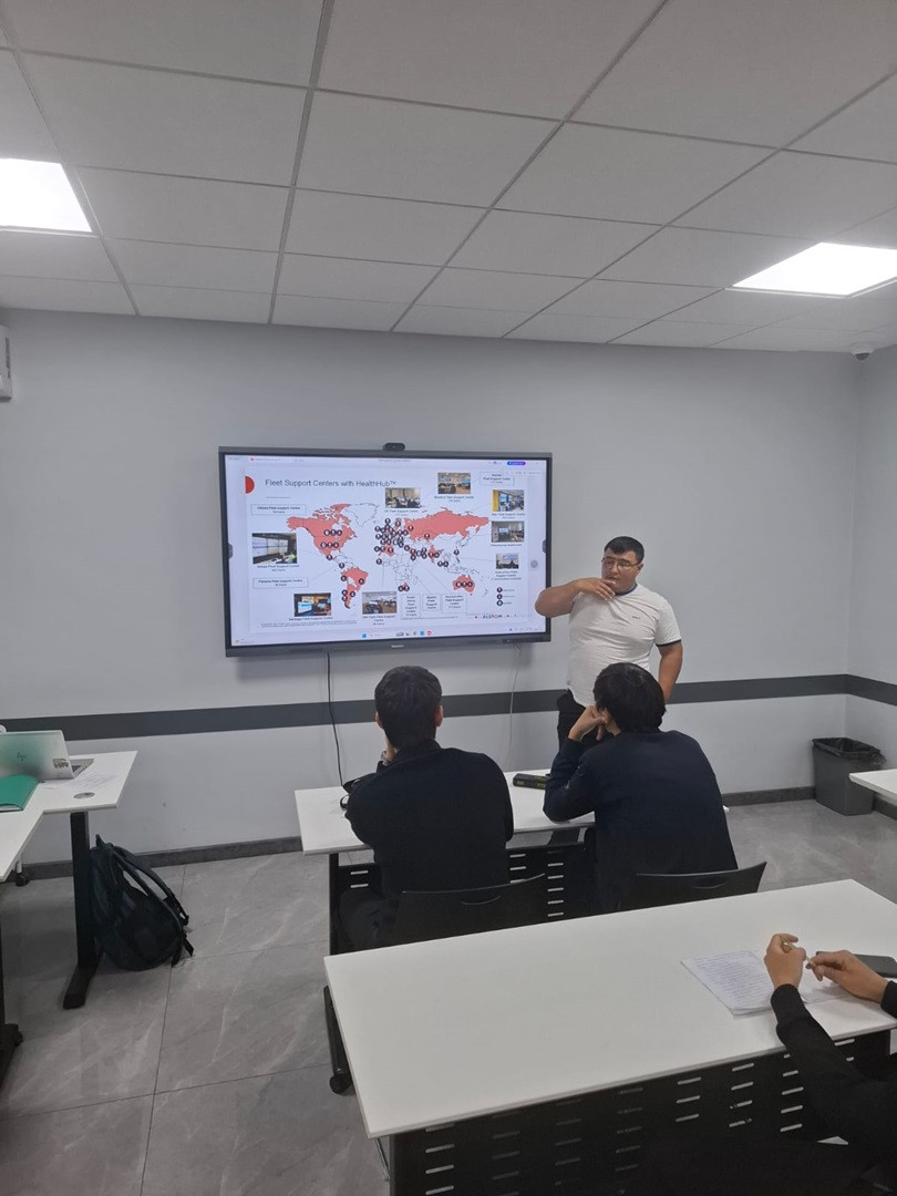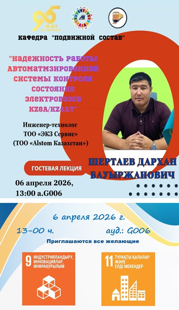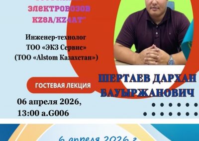 Darkhan B. Shertayev, Process Engineer at “EKZ Service” LLP (“Alstom Kazakhstan” LLP), Project Manager for Industrialization, and Head of Section at the Almaty Depot, delivered a guest lecture titled: “Reliability of the Automated Condition Monitoring System for KZ8A/KZ4AT Electric Locomotives” for students of groups IPS-24-1,2.