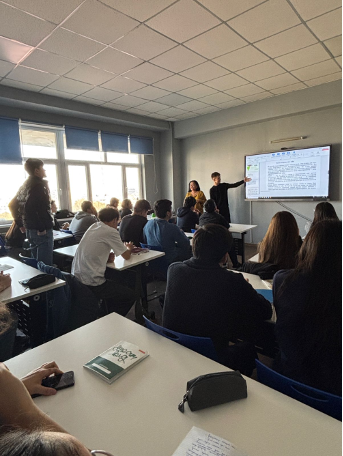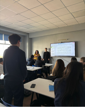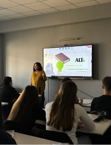 On October 20, 2025, Kazakh language teacher S. A. Aliyeva organized a discussion lesson in her groups on the topic “The Law Begins with You.” It is no secret today that many students are not fully aware of their rights. Therefore, after consulting with Lieutenant Colonel B. J. Sadykov, he provided students with a detailed explanation of legal matters. Additionally, Arystan Abidol conducted informative work on the same topic. The students actively participated, asked additional questions, and received comprehensive answers. The general discussion was held with great interest and engagement.