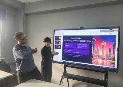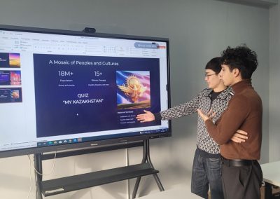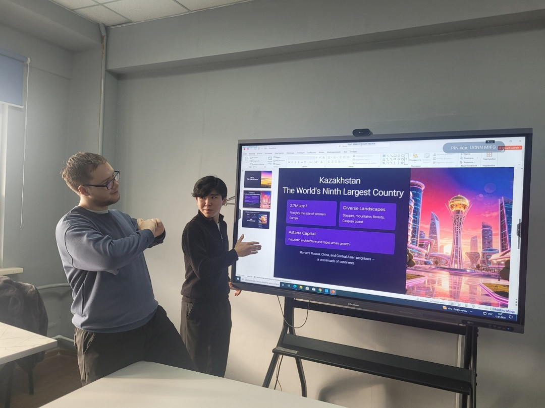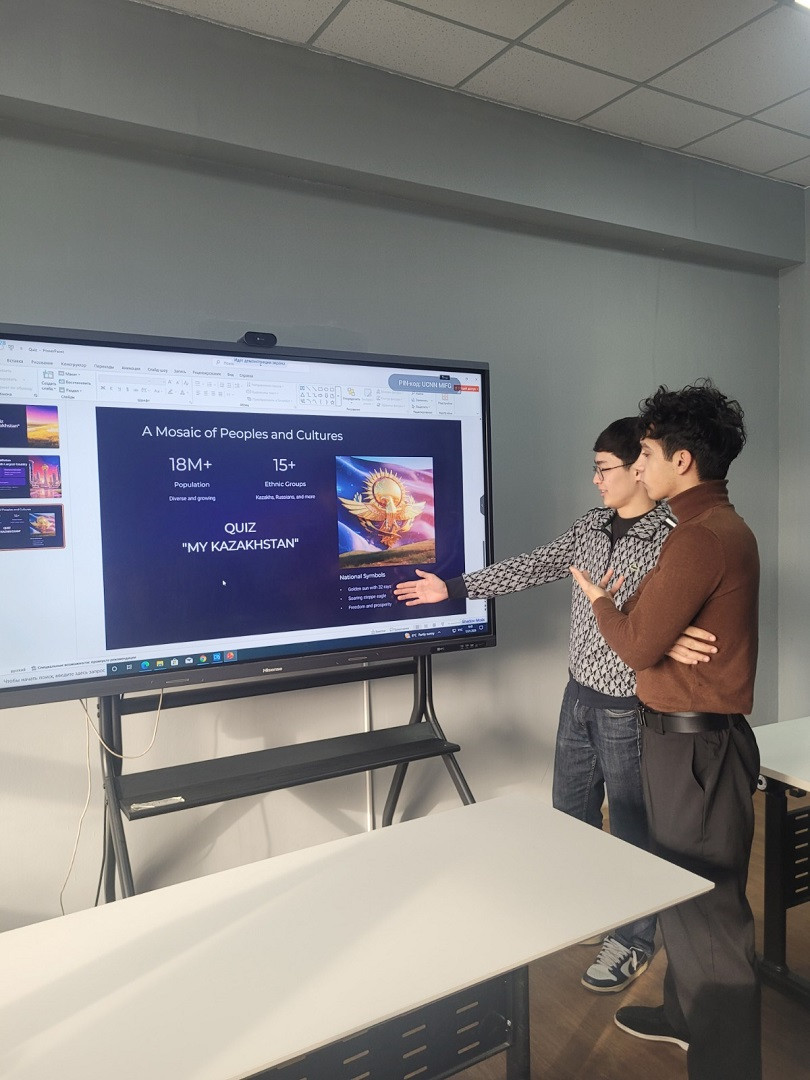 The quiz included questions on the geography, history, culture, education, and state symbols of the Republic of Kazakhstan. The format of the activity encouraged active student engagement: participants worked individually and in groups, discussed their answers, and justified their points of view in English.