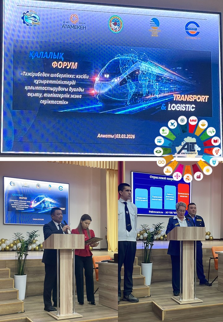 On March 4, 2026, Ashirbayev G.K., Candidate of Technical Sciences, Associate Professor and Head of the “Rolling Stock” Department at ALT University (named after M. Tynyshpaev), participated in the City Forum titled “From Experience to Professionalism: Dual Education, Mentoring and Partnership in the Formation of Professional Competencies.” The event took place at the Almaty College of Transport and Communications (ACTC).