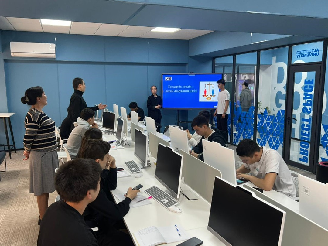 The discussion was led by G.N. Doszhanova, a senior lecturer in the Language Education Department, with the participation of first-year students. This initiative aligns with global efforts to promote equality and encourages students to become advocates for social justice.
