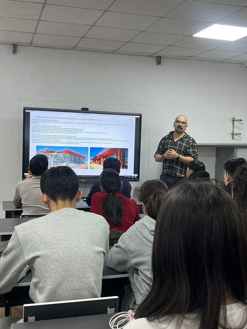 As part of Sustainable Development Goal No. 4, “Quality Education,” a guest lecture by Alexander Marchuk, Chief Engineer of Peri Kazakhstan, was held at the Department of General Engineering on December 14, 2025. The theme of the meeting, “Technologies for Monolithic Construction Works,” drew significant attention from civil engineering students, master’s students, and faculty members.