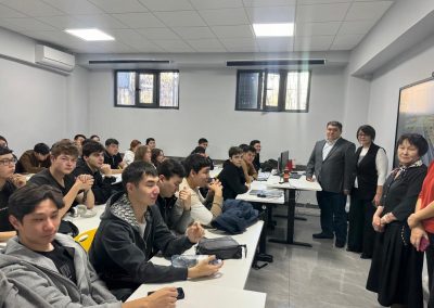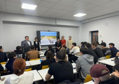 A. E. Oshanov actively interviewed students at the guest lecture and answered their questions. This lecture was especially important for students, as it allowed future specialists to gain in-depth knowledge of the latest trends and achievements in road construction. The lecture also discussed the problems of project work and ways to solve them on the example of specific projects. In addition, during the lecture, special attention was paid to the environmental and economic aspects of road construction. The issues of ensuring environmental safety in the design of highways, the use of energy-saving technologies, as well as the use of modern design tools in order to increase economic efficiency were considered.