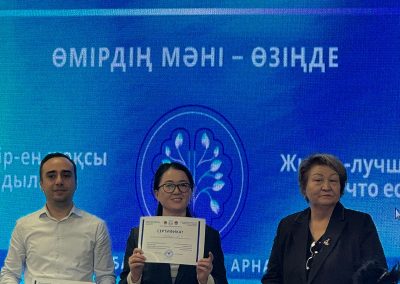 Participants received methodological brochures prepared by psychoanalyst S. Nurpeisova and professional advice from Professor T. Asimova, psychiatrist and clinical psychologist.