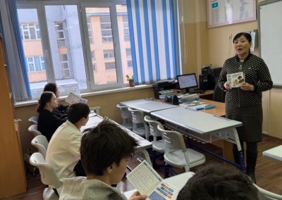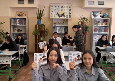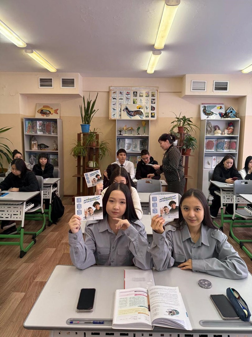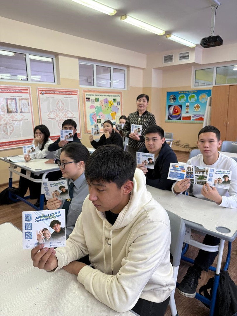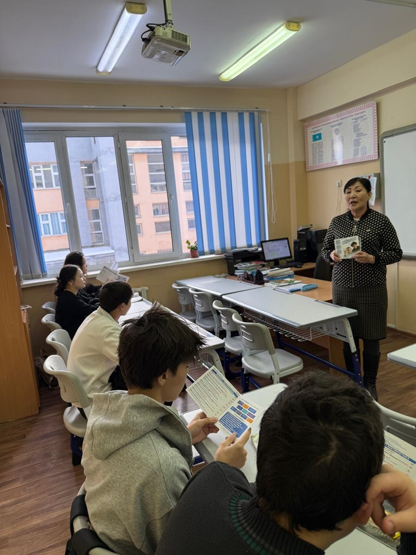 On April 3, 2026, G.N. Doszhanova, a senior lecturer in the Language Education Department, conducted a career guidance session for 11th-grade students at Comprehensive School No. 50 in the Turksib district of Almaty.