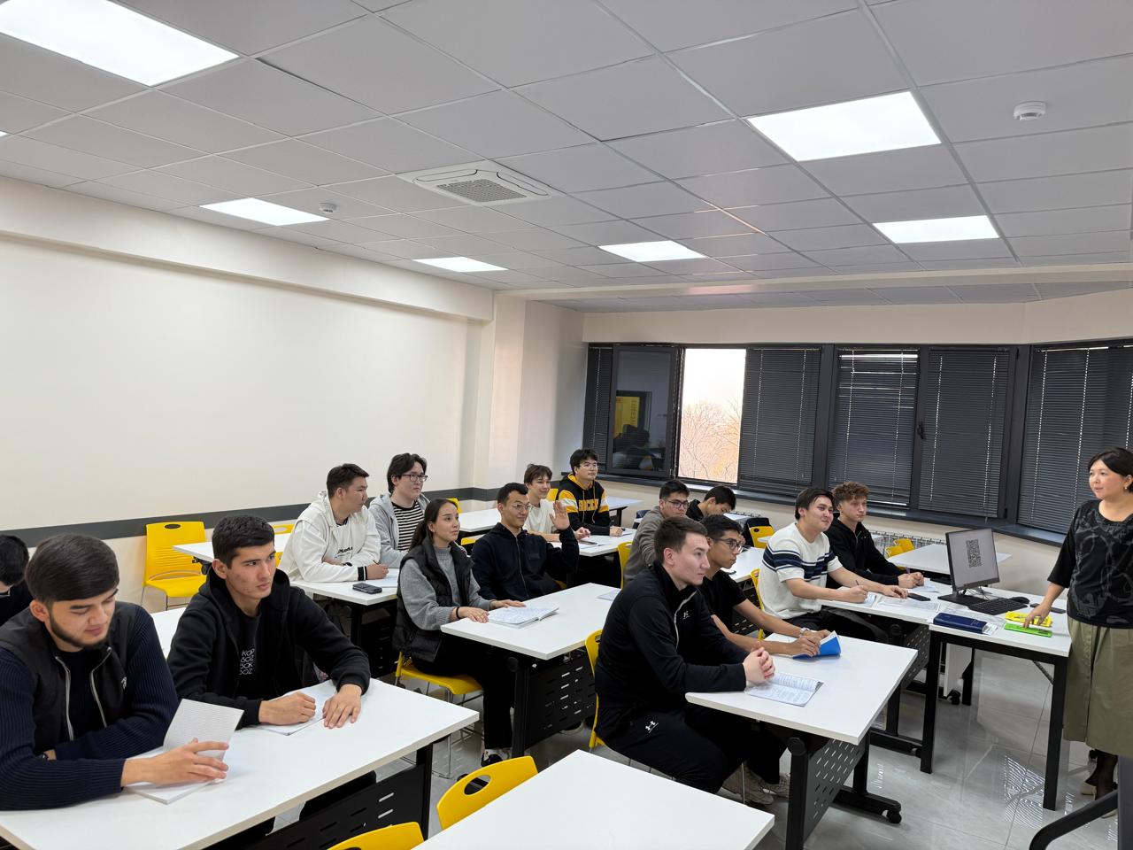 The lesson was conducted by Zhanna B. Elesheva, a senior lecturer at the Department of Transportation Services and Business, with students from the AU-23-2r group.
