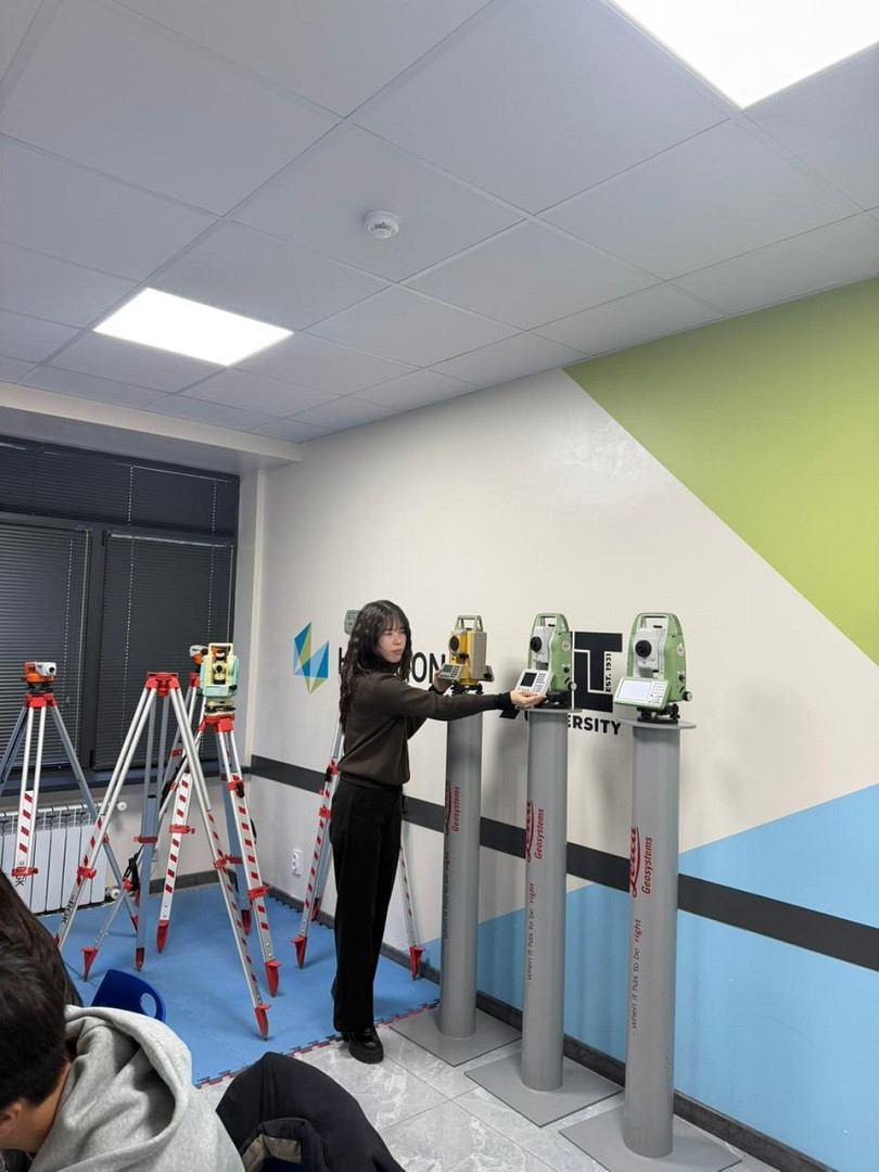 Our lesson is devoted to the practical mastery of modern geodetic equipment. Students have the opportunity to work with instruments such as the level, theodolite, total station, and other devices used in geodesy, land management, and engineering surveys. The training is based on a combination of theoretical knowledge and practical skills necessary for accurate measurement and analysis of land plots and infrastructure facilities.