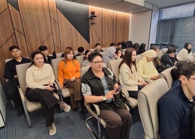 First- and second-year students, along with university faculty members, actively participated in the event. In particular, faculty members of the “Language Education” Department were present: Candidate of Pedagogical Sciences Smailova Feruza Ibragimovna, Senior Lecturer Madeniiet Nurgul, and Senior Lecturer Sagyrbayeva Dina Yerlanovna.