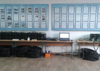 - Инструменталды мониторинг және кернеулі-деформацияланған күйді талдау: тензометриялық әдістер мен спектрлік талдауды қолдана отырып, майысуларды, орын ауыстыруларды, нақты кернеулер мен динамикалық коэффициенттерді анықтау.