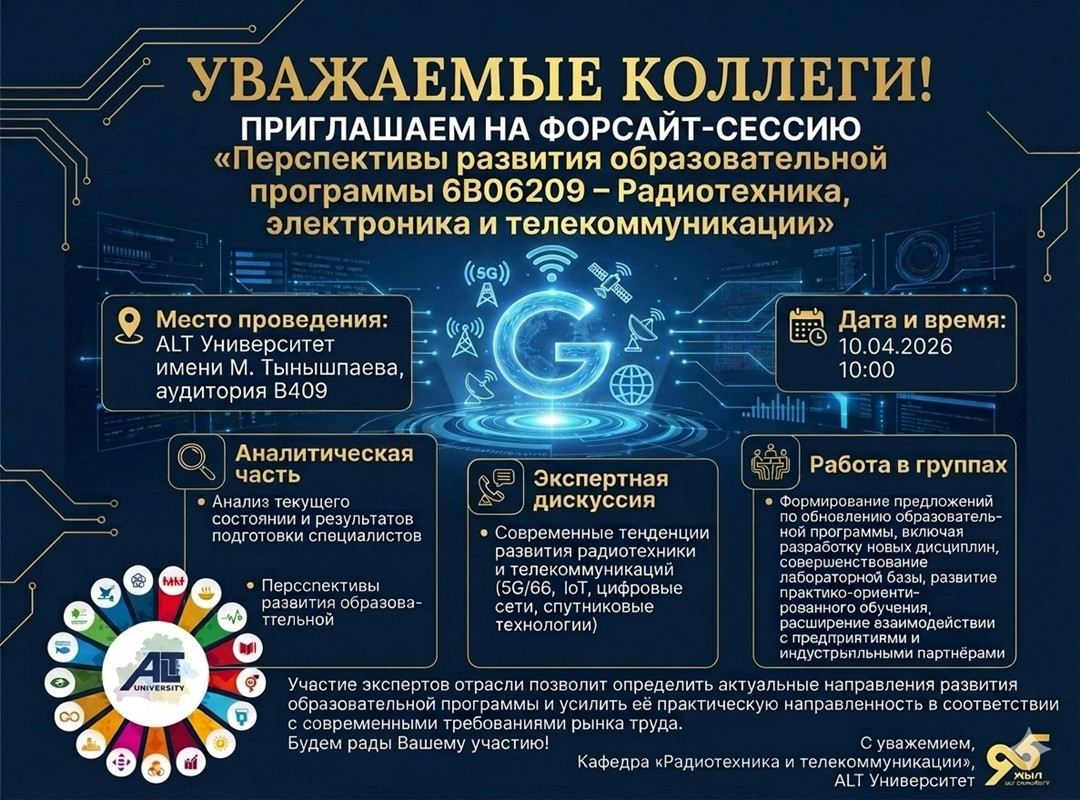 «Радиотехника және телекоммуникациялар» кафедрасы Сіздерді келесі тақырыптағы Форсайт-сессияға қатысуға шақырады: