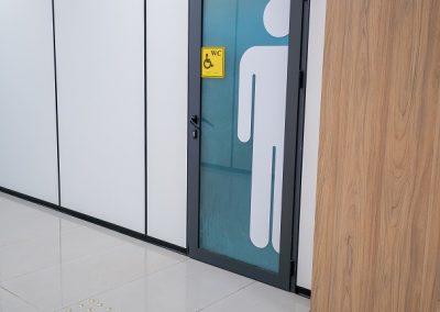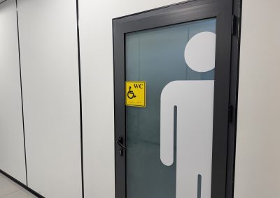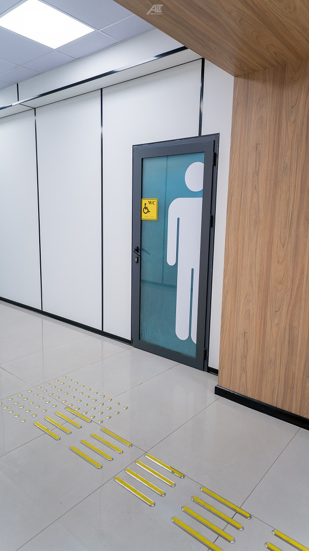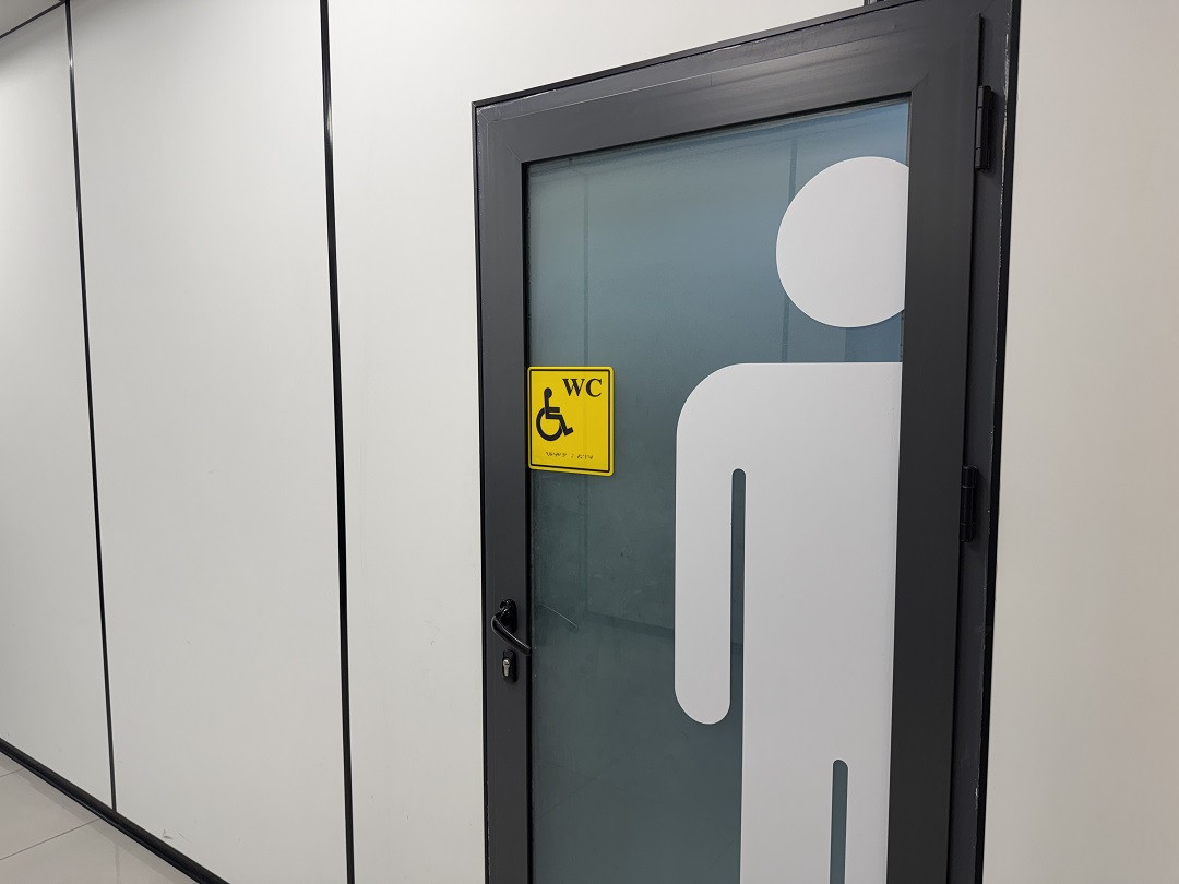 Арнайы ыңғайлы сантехникамен, тұтқалармен, ұстағыштармен жабдықталған мүгедектерге арналған жеке санитарлық торап (№ С214) ұйымдастырылды. Бөлмеде жеткілікті бос орын бар, бұл адамға жай жүруге ғана емес, сонымен бірге жаяу жүргіншілерді, арбаны пайдалануға немесе мүгедек пен бірге жүруге мүмкіндік береді.