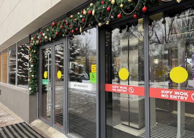 Бас оқу корпусына және № 5 павильонға жылжымалы есік пандустары орнатылды, бұл кресло-арбадағы адамдар үшін барынша қолжетімді болып табылады, еден деңгейінен 0,4 м.қашықтық.