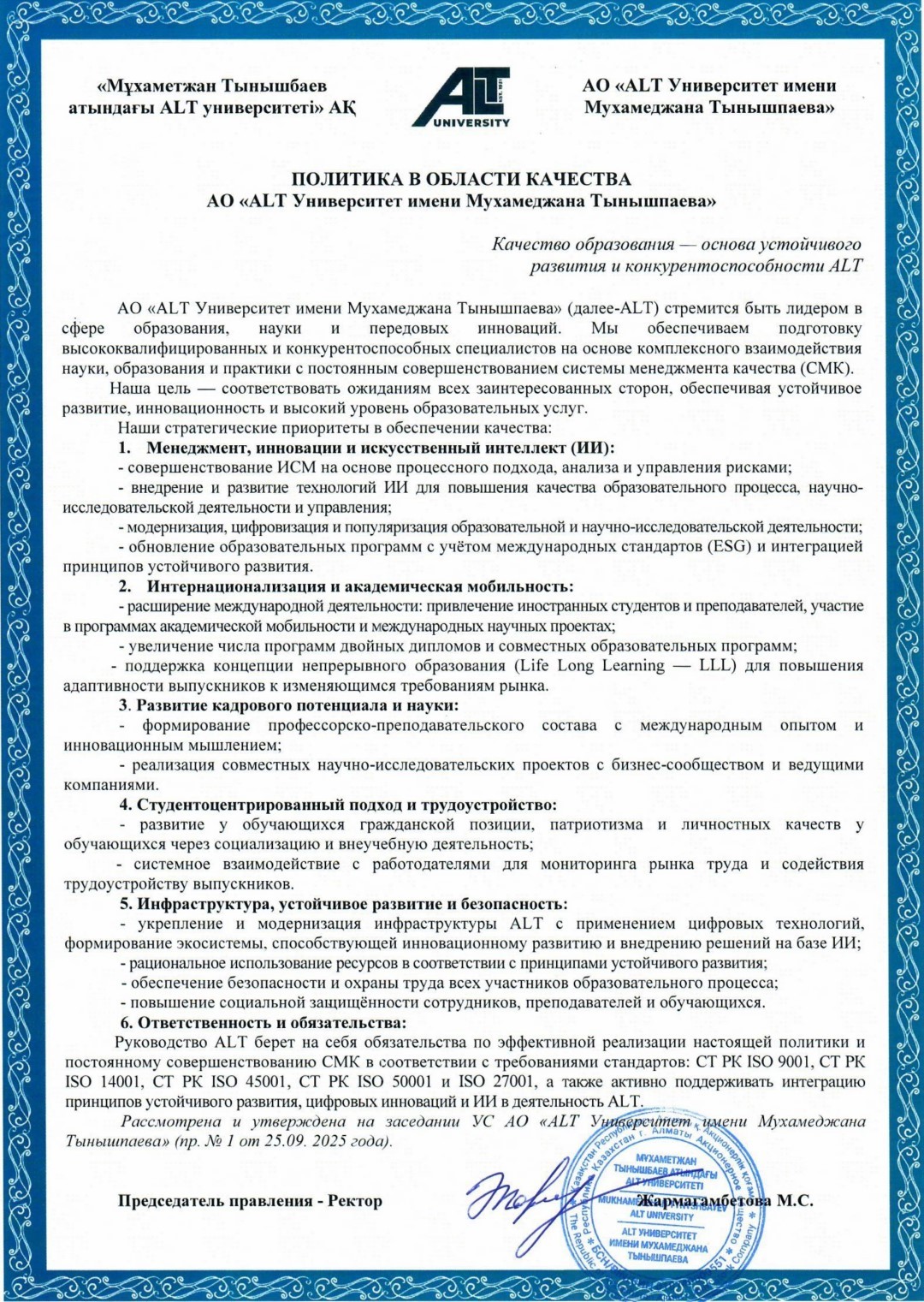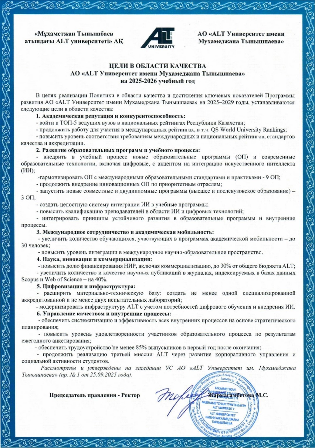 Миссия и стратегия file pdf icon Программа развития АО «ALT Университет имени Мухамеджана Тынышпаева» на 2024-2029 годы file pdf icon Стратегия внедрения искусственного интеллекта в АО «ALT Университет имени М. Тынышпаева»