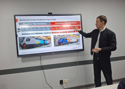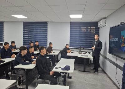 Участники узнали об истории компании, ее глобальном присутствии, стратегических проектах и вкладе в развитие железнодорожной инфраструктуры Казахстана. Габбасов Арман рассказал о программах стажировок, возможностях трудоустройства, требованиях к кандидатам, а также о том, какие компетенции Alstom считает ключевыми в будущем транспортной индустрии. Куаныш Мукушев представил практические примеры проектов, в которых участвует Alstom в Казахстане, и рассказал о роли проектных менеджеров в создании современных решений в сфере подвижного состава и инфраструктуры.