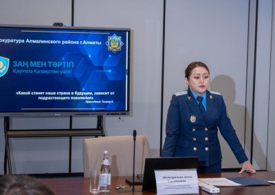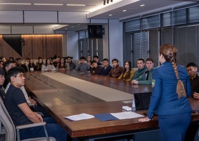 В рамках реализации ЦУР 16 со студентами Института транспорта и строительства была проведена лекция Абдикаримовой Асель Салмановной, старшего прокурора прокуратуры Алмалинского района города Алматы, на тему: «Профилактика насилия в молодежной среде и защита прав детей: недопущение буллинга и жестокого обращения».