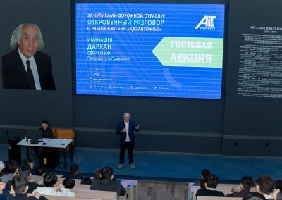 Особое внимание Дархан Иманашев уделил встрече со студентами ALT University, в ходе которой рассказал о развитии дорожной отрасли Казахстана, современных вызовах и перспективах транспортной инфраструктуры. Он поделился особенностями работы компании, осветил достижения АО «НК «ҚазАвтоЖол» за последние годы и ответил на вопросы обучающихся.