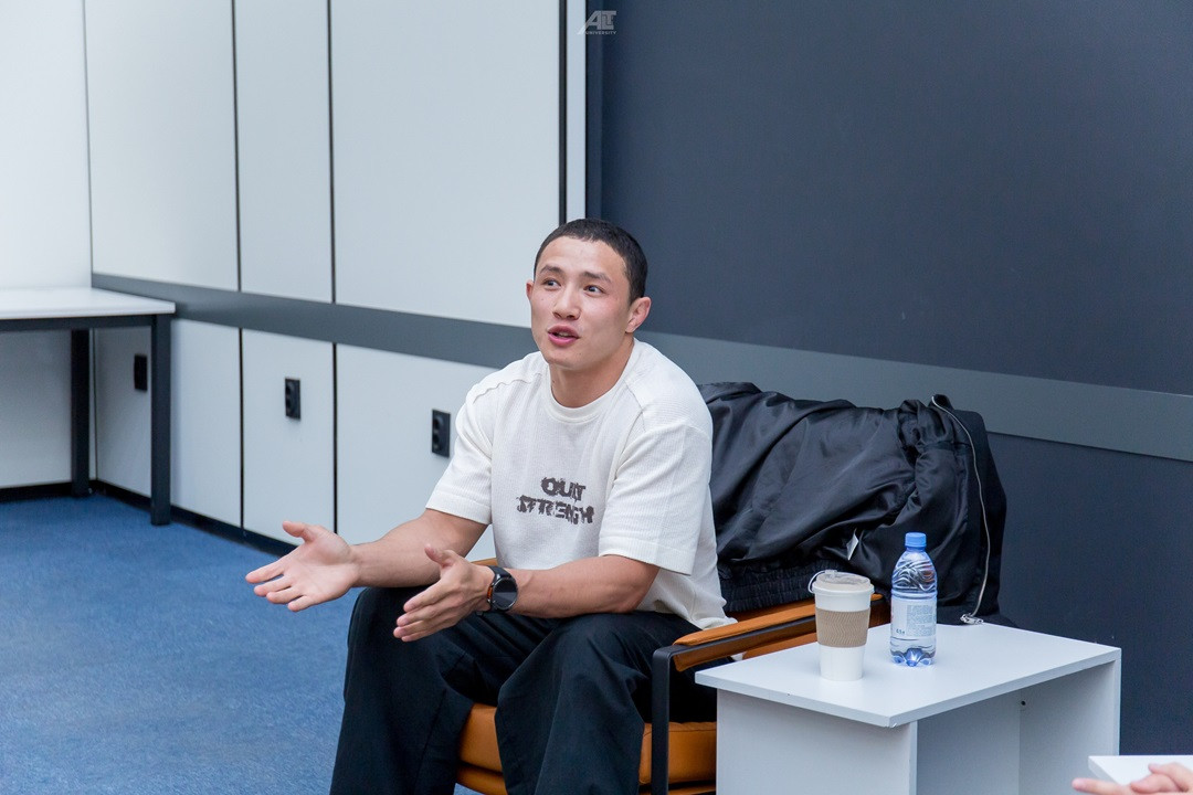 16 апреля 2026 года в нашем университете состоялась содержательная мотивационная встреча. Гостем стал актер и боец Octagon MMA Арнұр Қабдолдаев.