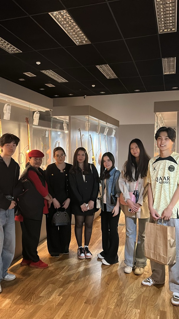 С 13 по 16 апреля в целях улучшения учебно-воспитательной работы студенты 1 курса (группы 3-88р, 3-89р, 3-90р, 3-91р, 3-92р, 3-93р, 3-98р, 3-97р, 3-102р) сениор-лектор кафедры «Language Education» вместе с Алиевой С.А. посетили музей народных музыкальных инструментов им. Ы.Дукенулы. В ходе экскурсии студенты посетили выставку казахских музыкальных инструментов, а также выставку «Димаш: один голос – тысяча страна», которая открылась в этом музее 18 февраля 2026 года. На выставке были представлены 70 уникальных музыкальных инструментов из личной коллекции певца, в том числе подарки от поклонников со всего мира и образцы его первой домбры.