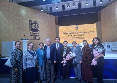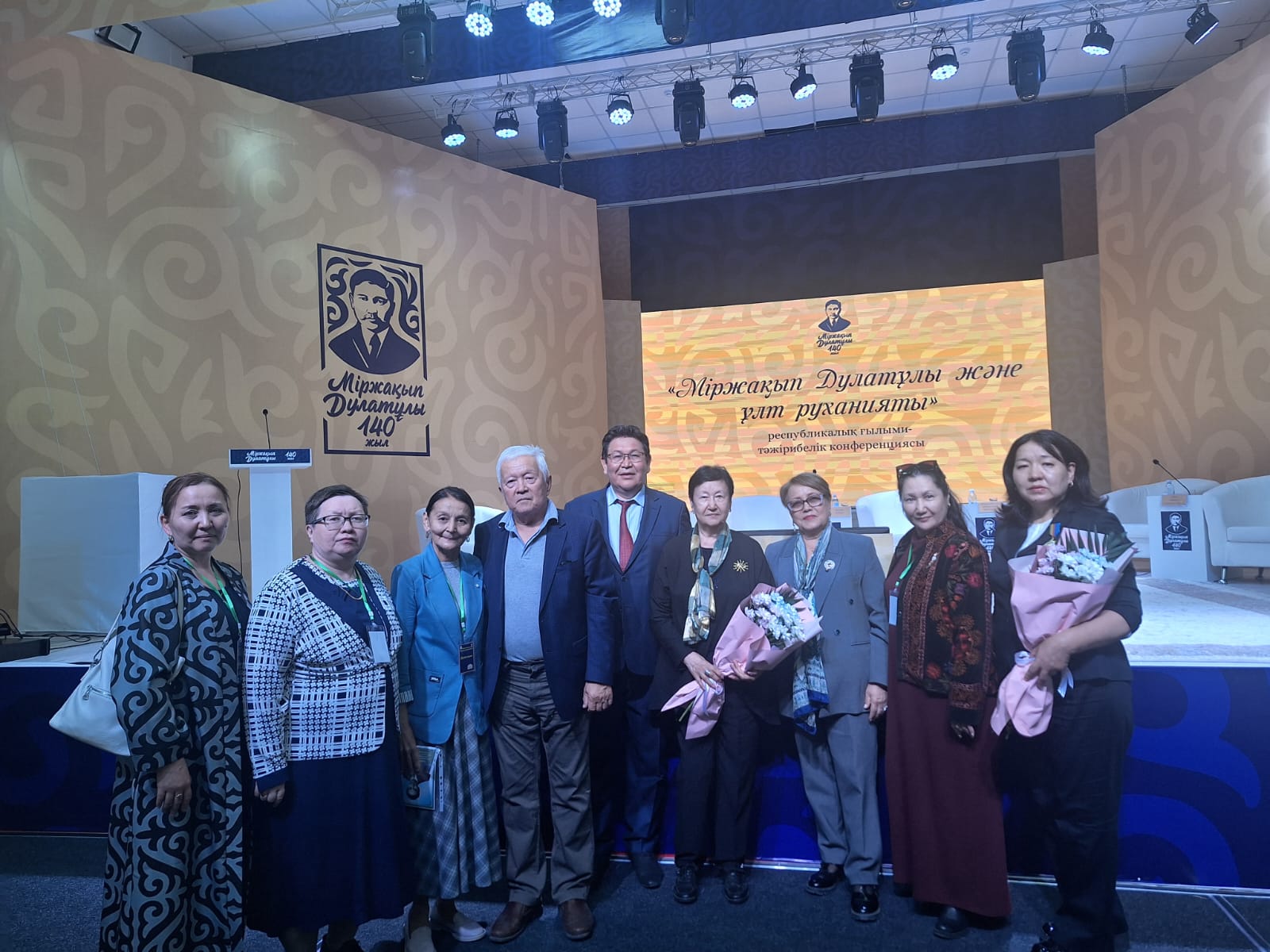 Особое место в мероприятии заняло участие доцента кафедры «СГД и ФВ» ALT университета имени Мухаметжана Тынышбаева Сабиры Иманбаевой – известного исследователя творчества Миржакыпа. Она выступила с докладом «Миржакып Дулатов и духовность нации» на научно-практической конференции. В своём выступлении она отметила: «Чтобы воспитать у подрастающего поколения дух патриотизма и преданность Родине, мы должны постоянно пропагандировать честное служение и бесценное наследие таких выдающихся личностей, как Миржакып Дулатов». За активное участие в мероприятии, посвящённом 140-летию великого сына нации, Иманбаева Сабира Сарыбаевна была награждена благодарственным письмом акима Костанайской области Кумара Аксакалова, юбилейной медалью и удостоена медали «Миржакып Дулатулы» от имени потомков просветителя. Поздравляем доцента Иманбаеву Сабиру Сарыбаевну с заслуженными наградами!