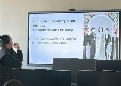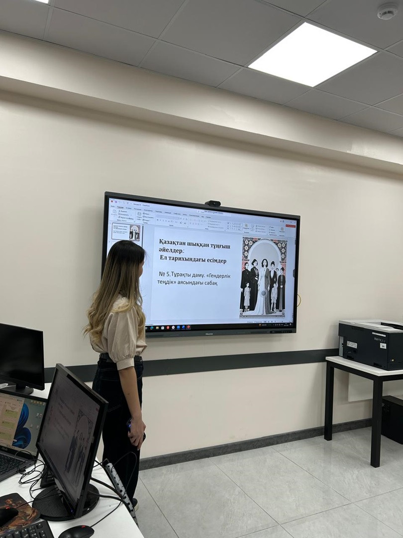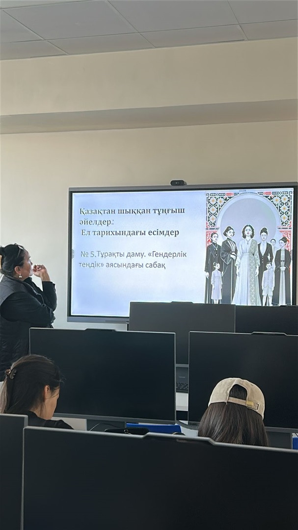 4 марта 2026 года в преддверии Международного женского дня в рамках реализации ЦУР №5 «Гендерное равенство» в группах 388, 389 и 390 прошло тематическое занятие на тему: «Гендерное равенство. Первые казахские девушки».