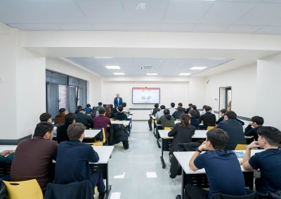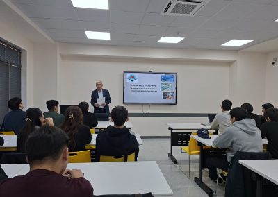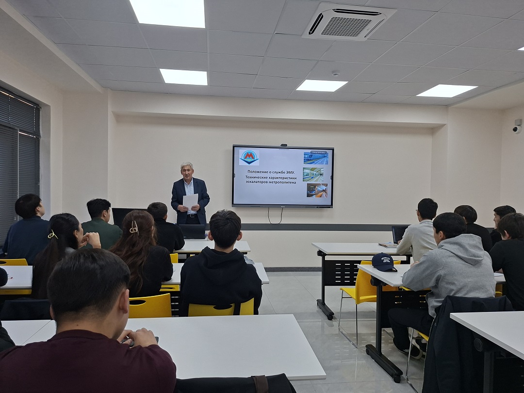 18 ноября состоялась познавательная гостевая лекция для студентов, посвящённая работе и техническому обслуживанию электромеханических устройств (ЭМУ) Алматинского метрополитена. Спикером выступил Сулейменов Канат Битинбаевич, главный инженер службы электромеханических устройств КГП «Метрополитен г. Алматы». Тема лекции: «Положение и службе ЭМУ. Технические характеристики эскалаторов Метрополитена».