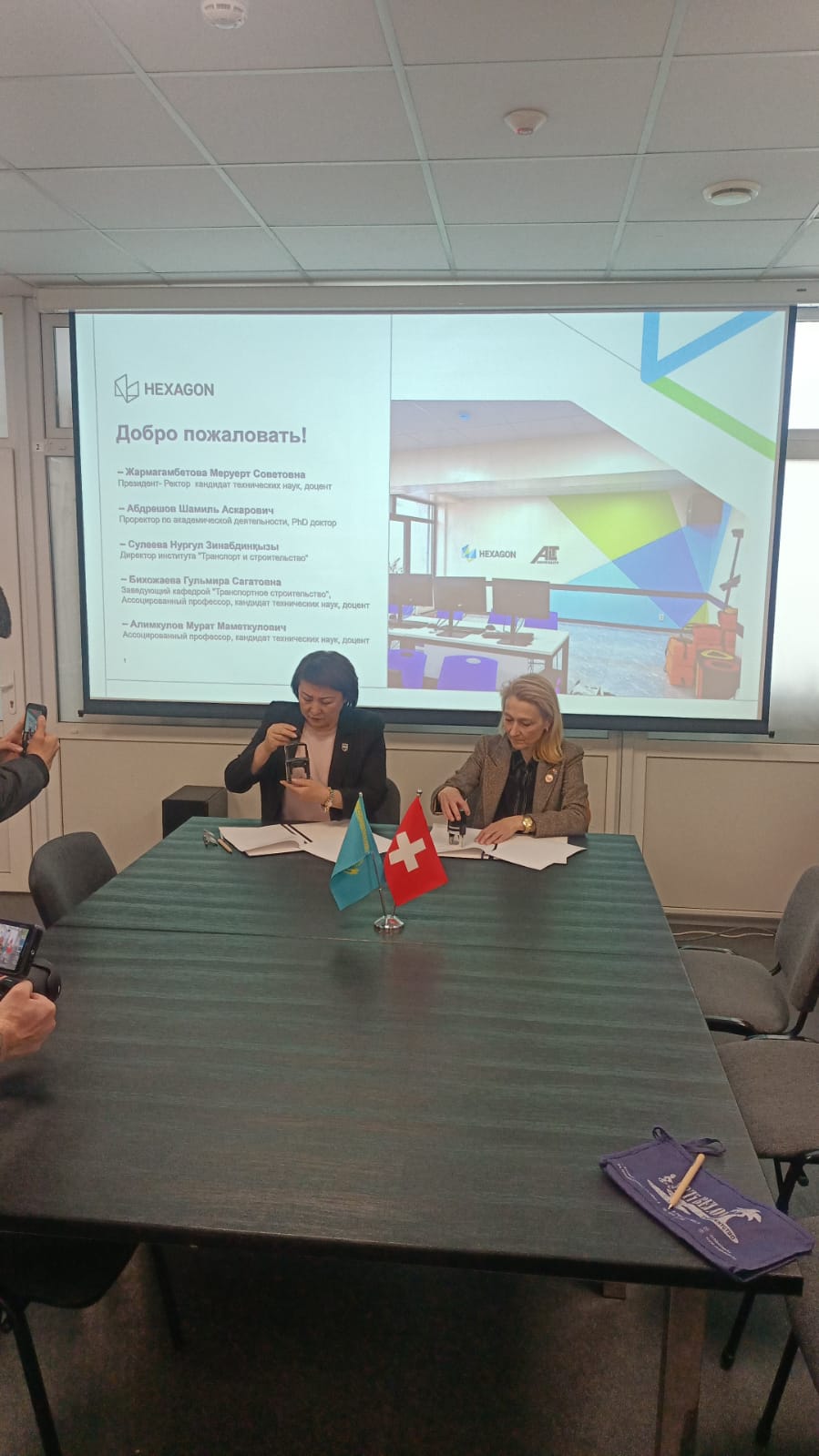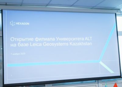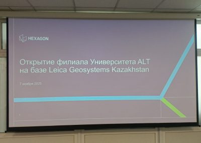 Для повышения качества практической и научно-исследовательской подготовки обучающихся, а также обеспечения доступа к современному геодезическому оборудованию, цифровым технологиям и инновационным решениям 07.11.2025 г. был открыт филиал кафедры «Транспортное строительство» на базе ТОО «Leica Geosystems Kazakhstan». Открытие состоялось при участии Председателя Правления-Ректора АО «ALT Университет имени Мухамеджана Тынышпаева» Жармагамбетовой Меруерт Советовны и генерального директора компании Кочетовой Марины Александровны.