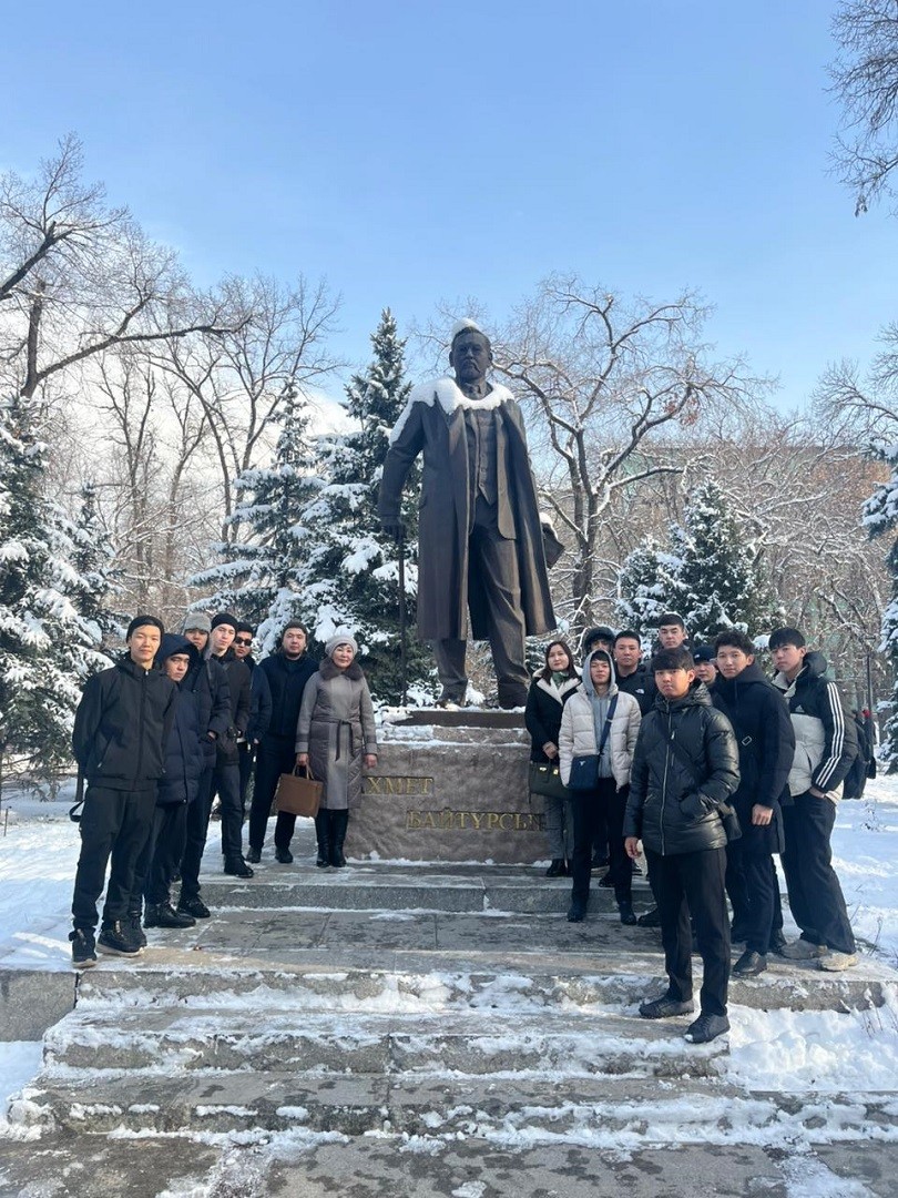 12 декабря 2025года сениор-лекторы кафедры «Language education» Досжанова Г.Н., Шайжанова М.М. вместе со студентами 2-го курса посетили музей общественного деятеля, поэта, литературоведа и ученого Ахмета Байтурсынова. В музее хранятся произведения, личные вещи и фотографии народного учителя Ахмета Байтурсынова. Посещение музея придало студентам духовной силы.