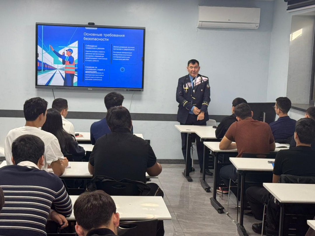 Студенты активно задавали вопросы о нюансах управления маневровыми локомотивами, технических особенностях железнодорожной техники и карьерных возможностях в локомотивных депо. Канат Нурбаевич поделился рекомендациями для будущих специалистов, подчеркнув значимость профессиональной подготовки, ответственности и постоянного развития.