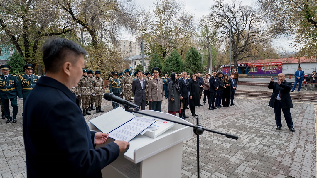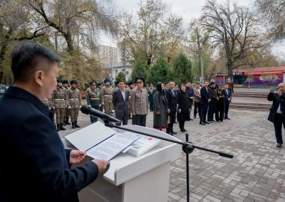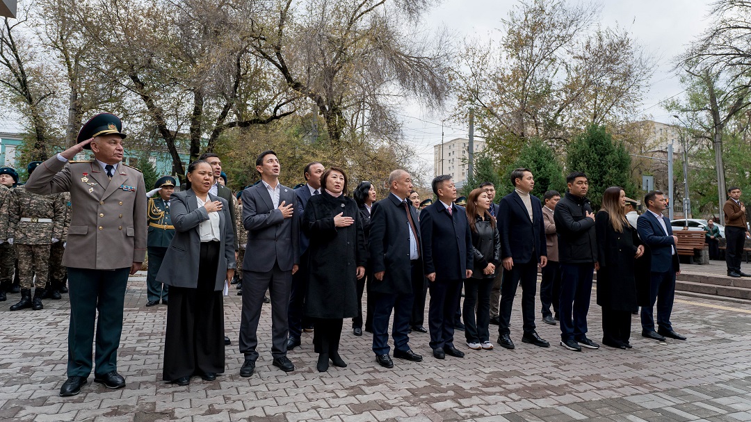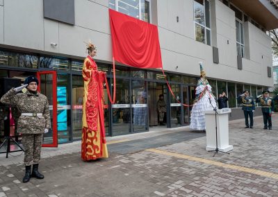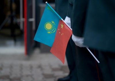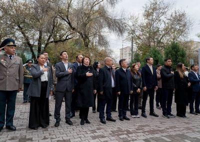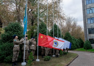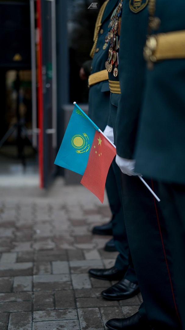 Церемония началась с поднятия флагов Республики Казахстан и Китайской Народной Республики под исполнение гимнов двух стран военным оркестром Вооруженных Сил Республики Казахстан.