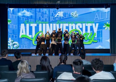 День открытых дверей превратился не только в полезное, но и по-настоящему яркое событие. Для гостей выступил университетский Live Band, подаривший живой звук, мощную энергетику и атмосферу настоящего студенческого фестиваля. Продолжили программу участники команды Жайдарман — мастера юмора и импровизации, которые доказали: студенческая жизнь в ALT наполнена не только учёбой, но и творчеством.