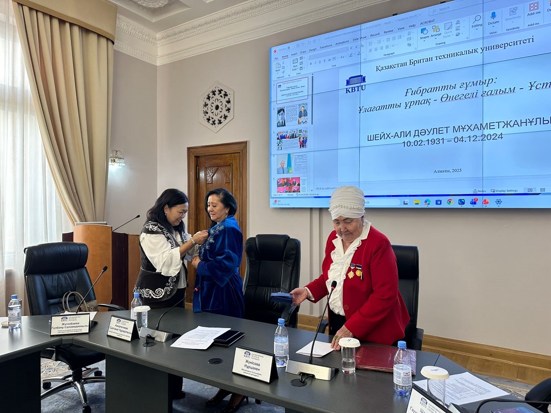 Мероприятие – круглый стол под названием «Великое поколение – образцовый ученый – учитель» – было очень впечатляющим. Доктор физико-математических наук, профессор Салтанат Нурадиловна выступила с докладом и рассказала о наградах и научных достижениях д.т.н., профессор Даулета Мухамедженулы в период его работы в Казахстанско-Британском техническом университете, когда ректором был Адиль Ахметов. Она также рассказал, что встретился с д.т.н., профессор Даулетом Мухамеджанулы на 90-летии Академии АЛТ им. М. Тынышбаева и узнал много информации. Нуршакен апай со слезами на глазах вспоминала, как она нашла его, доктора технических наук, профессора Даулета Мухамаджанулы, и как братья приветствовали его во время их встречи. О непростом жизненном пути М. Тынышбаева рассказывает доктор исторических наук, профессор Жугенбаева Гульбану Саламаддиновна, кандидат исторических наук, доцент Шамшиева Гаухар Сагындыковна сообщила, что доктор технических наук, профессор Даулет Мухамеджанулы посетил могилу Аширбаева Галымжана Кожахатулы в Чикаго, США, где совершил молитву у могилы, познакомился с Аделией Даулеткызы, а также встретился с сыном доктором технических наук, профессором Аскаром Даулетулы. Тастулеков Бакытжан Сабитулы впечатляюще рассказал, как в 1997 году, когда он впервые приехал в Казахстан вместе с Даулетом Мухаметжанулы, его радушно принимали известные деятели того времени и устраивали большие вечеринки.