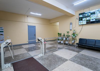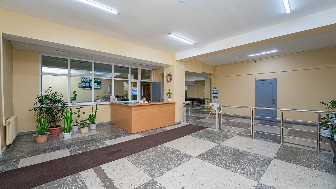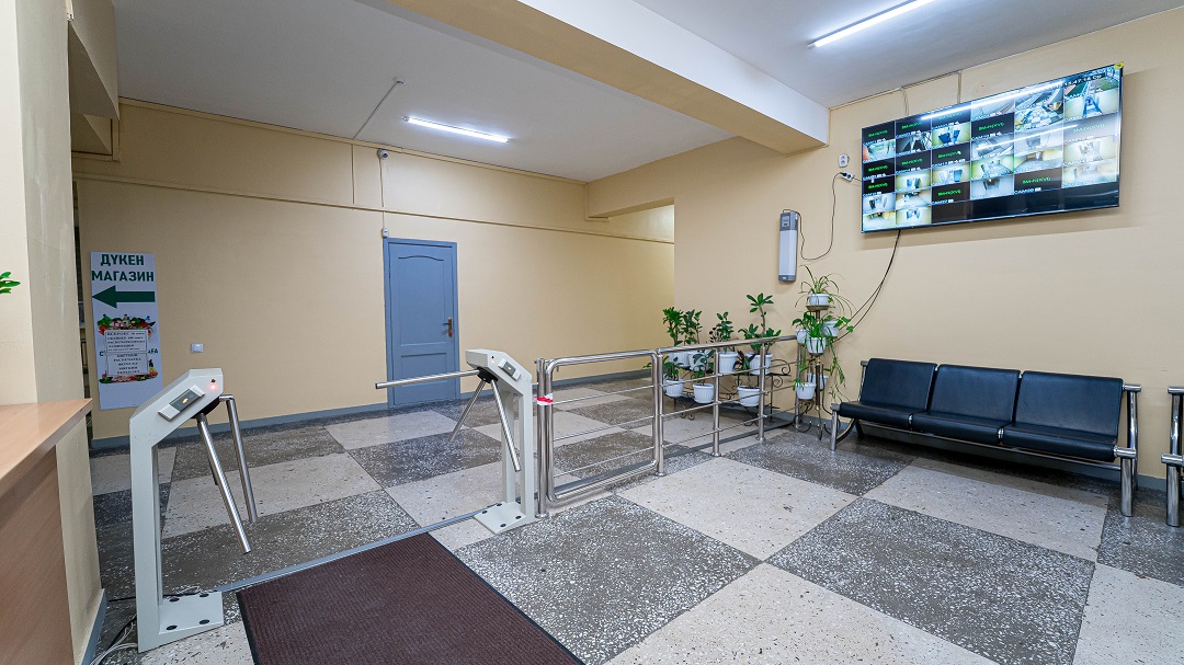 Студенттердің қауіпсіздігі үшін сыртқы және ішкі бейнебақылау камералары орналасқан.