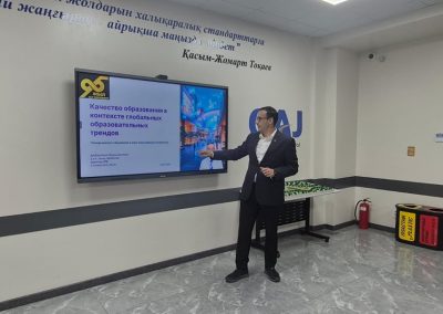 Университеттің ТДМ күн тәртібіндегі рөлі Біздің Университет жаһандық білім беру трендтерінің маңыздылығын түсіне отырып, тұрақты даму міндеттерін шешуге белсенді қатысады. Оқу-әдістемелік кеңестің (ОӘК) Халықаралық білім күніне арналған кезекті отырысында заманауи сын-қатерлер мен даму бағыттары туралы негізгі баяндамалар тыңдалды.