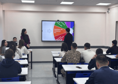 01.12.-05.12.2025 аралығында Әлеуметтік-гуманитарлық пәндер және дене тәрбиесі кафедрасының ПОҚ “Инновациялық әдістер” апталығы кезінде түрлі әдістермен тәжірибелік сабақтар өткізді. Сабақ барысында: Quizzes, Kahoot, Padlet, Кейс-стади, түрлі электрондық қосымшалармен бірге викториналар және Wayground, QRCode-Monkey, Wordwall қосымшалары мен инновациялық әдістері арқылы тартымды да, қызықты сабақтар жүргізді. Сабақтарға әр түрлі эксперттер қатысып, бағалаулар мен талдаулар жасады.
