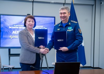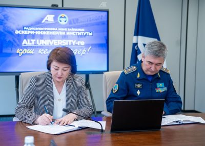 2026 жылғы 27 ақпанда Мұхамеджан Тынышпаев атындағы ALT Университеті мен ҚР Қорғаныс министрлігінің Радиоэлектроника және байланыс әскери-инженерлік институты арасында ынтымақтастық туралы Меморандумға қол қойылды. Меморандумның негізгі мақсаты — серіктестік қарым-қатынастарды орнату және ұзақ мерзімді, тиімді әрі өзара тиімді ынтымақтастықты дамыту, сондай-ақ ақпарат алмасуды қамтамасыз ету және бірлескен бастамаларды іске асыру.