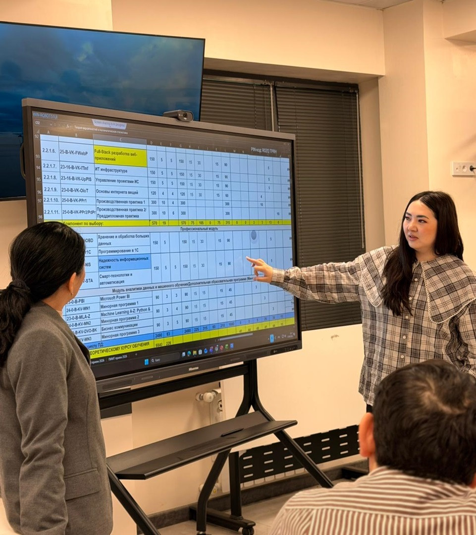 Сессия барысында кафедраның білім беру бағдарламалары қарастырылды: 6В06116 — «Ақпараттық жүйелер», 6В06118 — «Бағдарламалық инженерия» және 6В06126 — «Қолданбалы жасанды интеллект». Қатысушылар пәндердің мазмұнын талқылап, еңбек нарығының заманауи талаптарын ескере отырып жаңартулар ұсынды, сондай-ақ студенттердің тәжірибеге бағытталған даярлығын күшейту қажеттігін атап өтті.