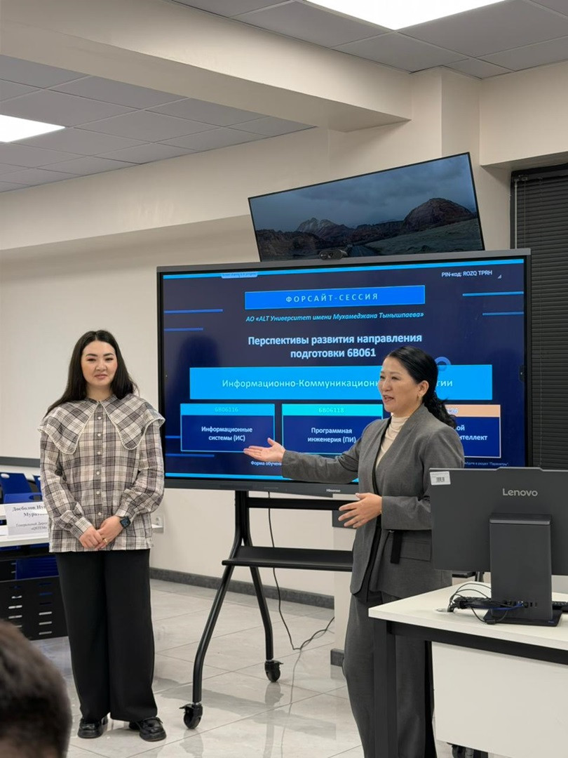 ТДМ 4 «Сапалы білім» мақсатын іске асыру аясында 2026 жылғы 17 сәуірде М. Тынышпаев атындағы ALT Университетінде «Ақпараттық-коммуникациялық технологиялар» кафедрасы «6В061 – Ақпараттық-коммуникациялық технологиялар» даярлау бағытын дамыту перспективалары» тақырыбында форсайт-сессия өткізді.