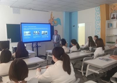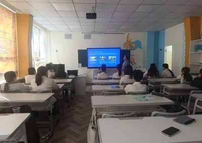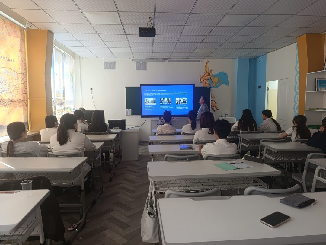 Кездесу барысында оқушылар БҰҰ-ның 17 жаһандық мақсатымен танысып, климаттың өзгеруімен күрес және экологиялық қауіпсіздікті қамтамасыз ету мәселелерін талқылады. Семинар оқушылардың үлкен қызығушылығын тудырып, олар экожүйелерді сақтау мен өмір сапасын арттырудағы жастардың рөлі туралы өз ойларымен бөлісті.