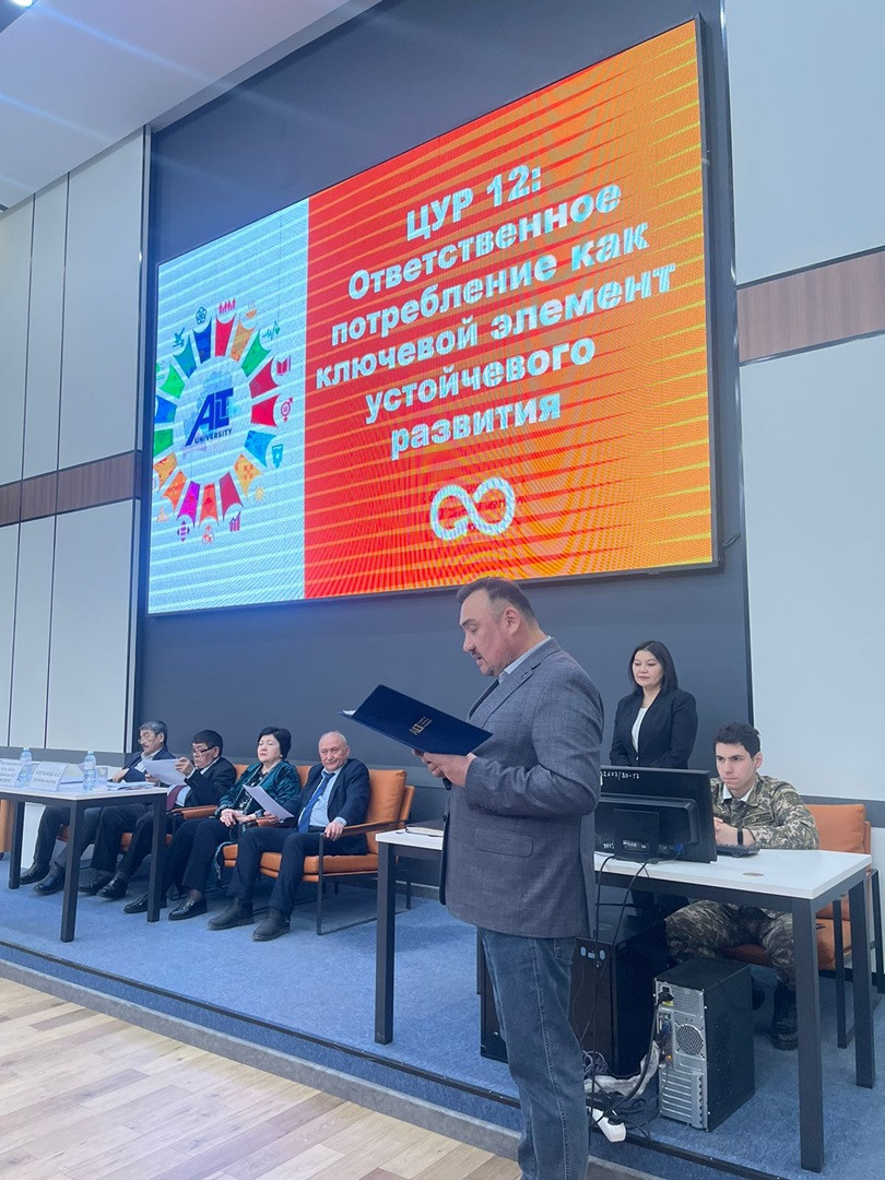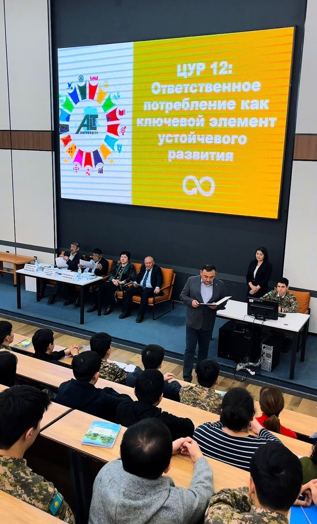 Логистика және бизнес институтының «Көлік қызметтері және бизнес» кафедрасы «Логистика (салалар бойынша)» білім беру бағдарламасы докторанттарының педагогикалық практикасы аясында БҰҰ-ның Тұрақты даму мақсаттарына арналған оқу-тәрбие іс-шарасын өткізді. Ұйымдастырушылар — Әскери іс институтының өкілі, запастағы полковник Н.М. Сексенбаев пен оқытушы Н.М. Байдильдаева — мамандарды даярлаудың пәнаралық сипатын паш етті.