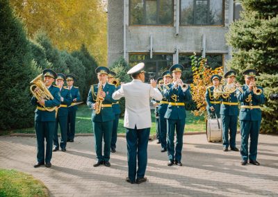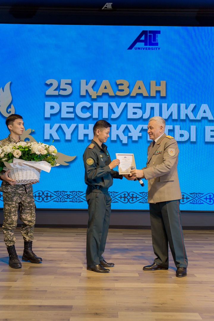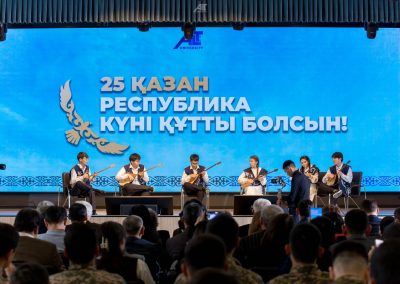 Мерекелік кештің шырайын университетіміздің өнерпаз жастары кіргізді. Көрермендер «Арт Домбыра» ансамблінің әуезді күйіне, «Ultimatum» би тобының әсерлі биіне тәнті болды. Сондай-ақ, ҚР Қарулы Күштерінің Ұлттық әскери-патриоттық орталығы ұжымы да өз өнерін паш етіп, көрермендерге ерекше рух пен патриоттық сезім сыйлады.