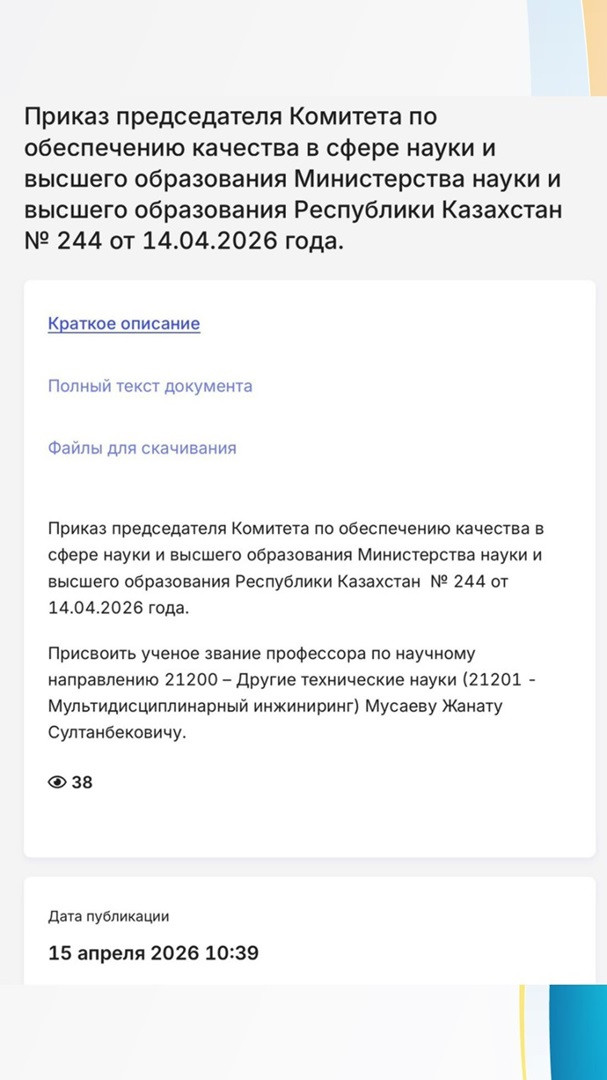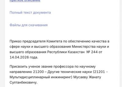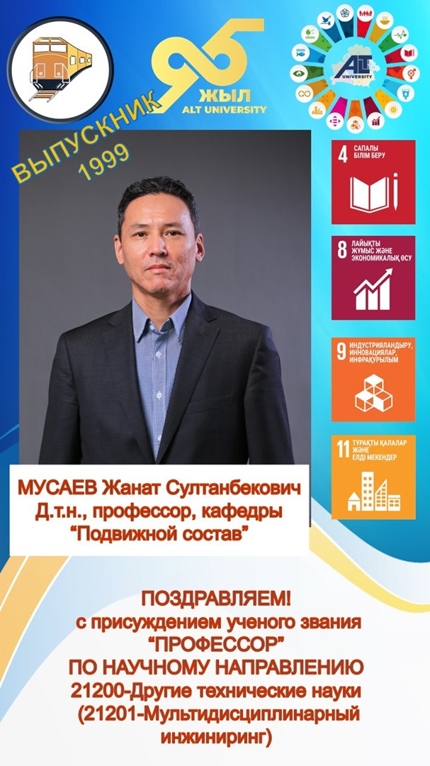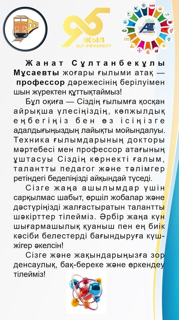 М. Тынышпаев атындағы ALT Университетінің ұжымы Жанат Сұлтанбекұлы Мұсаевты жоғары ғылыми атақ — профессор дәрежесінің берілуімен шын жүректен құттықтайды!