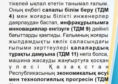 ТДМ 9 (Инновациялар мен инфрақұрылым): Көлік саласына озық технологияларды енгізу;
