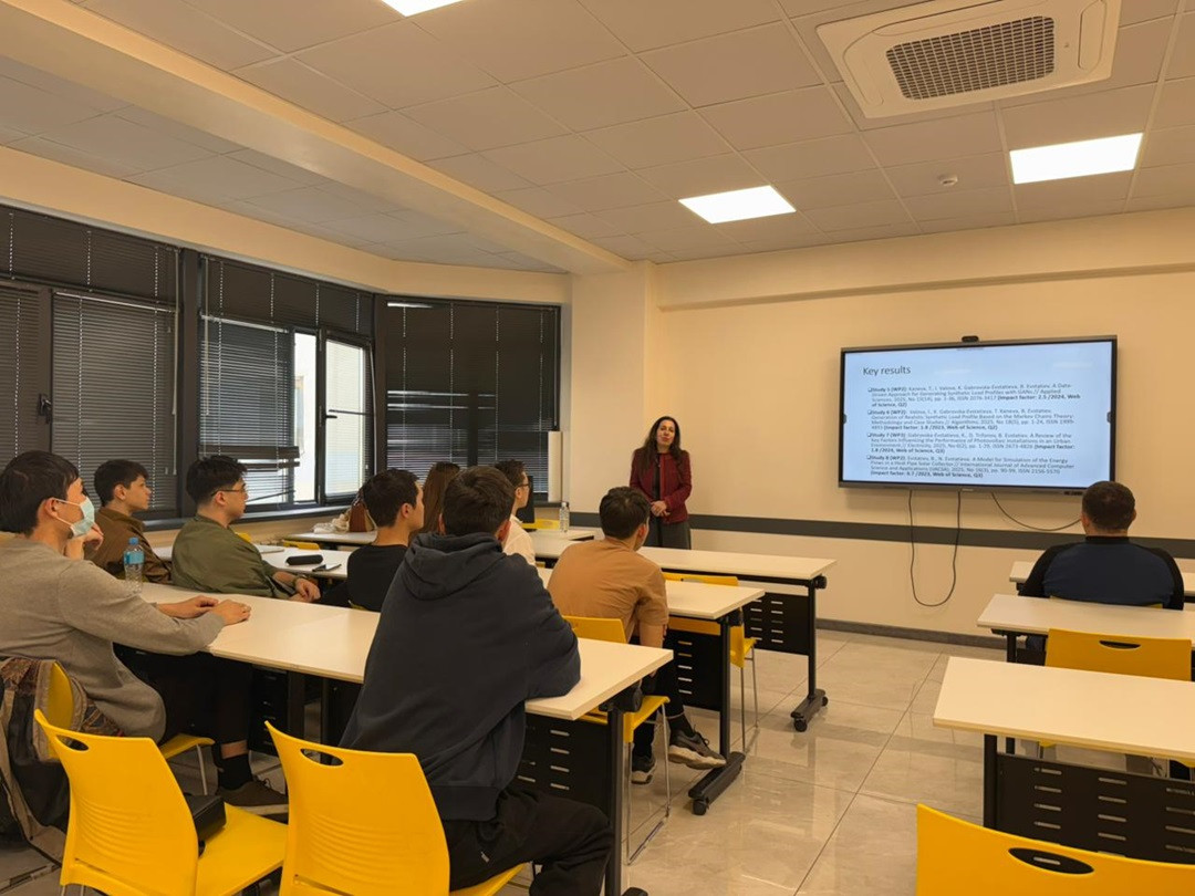 Дәріс барысында профессор Христова цифрлық энергетикалық жүйелерде жасанды интеллектті қолданудың заманауи тәсілдері мен үздік тәжірибелерін ұсынды. Энергетикалық желілерді интеллектуалды басқару, энергия тұтынуды оңтайландыру, сондай-ақ энергетикалық инфрақұрылымның тиімділігі мен сенімділігін арттыру үшін машиналық оқыту алгоритмдерін енгізу мәселелері жан-жақты қарастырылды.